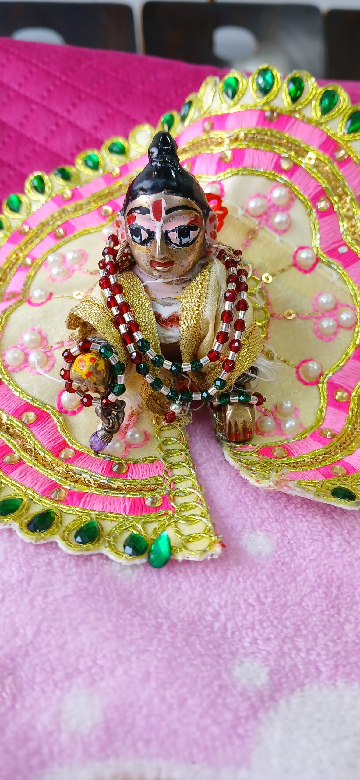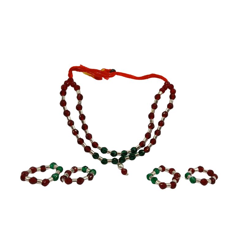 Elegantly crafted with red and green beads, this lightweight jewellery set enhances Laddu Gopal Ji’s shringar with a traditional and devotional touch. Perfect for daily pooja, Janmashtami, festivals, and special temple adornment.