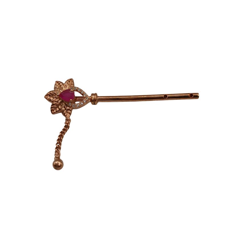 Elegantly designed with a ruby-colored stone, sparkling CZ accents, and a delicate hanging chain, this flute adds a royal and devotional charm to Laddu Gopal Ji’s shringar. Ideal for daily pooja, Janmashtami, and festive temple adornment.