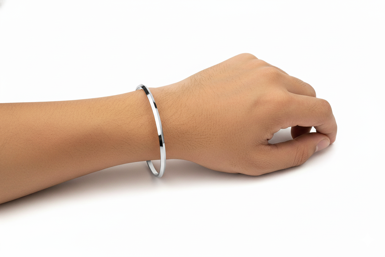 Crafted from silver, this elegant silver kada combines timeless tradition with modern design. Each piece reflects fine craftsmanship and enduring strength, making it perfect for daily wear or special occasions. Its sleek yet sturdy design symbolizes power, purity, and protection — a true statement of style for both men and women. Polished to perfection with an anti-tarnish finish, this kada offers long-lasting shine and comfort. Whether worn solo or paired with other accessories, it adds a touch of sophistication and spiritual elegance to every look.