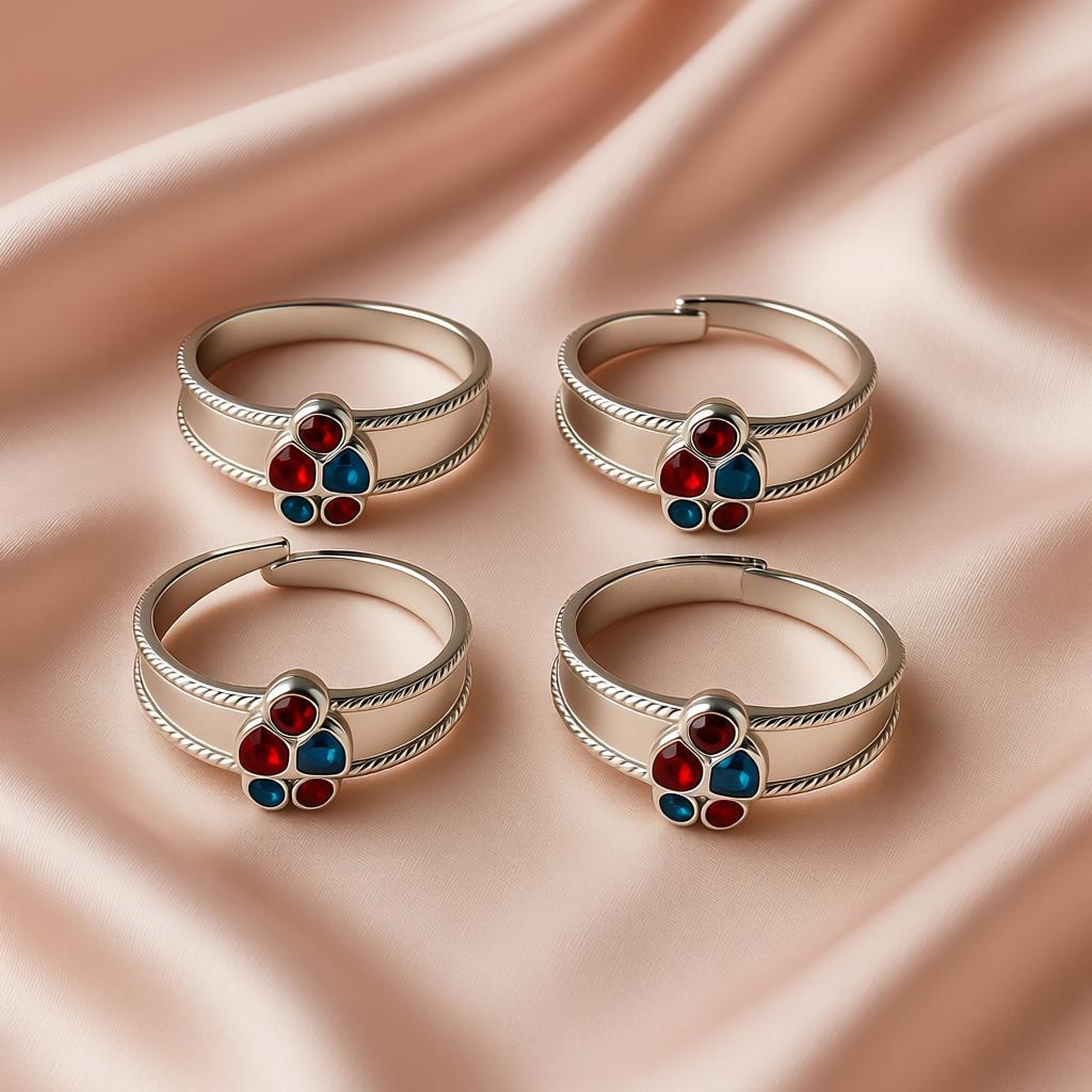 Beautifully crafted premium silver toe rings with sparkling stones. Adjustable, lightweight और daily-wear के लिए perfect. Skin-friendly और long-lasting shine.